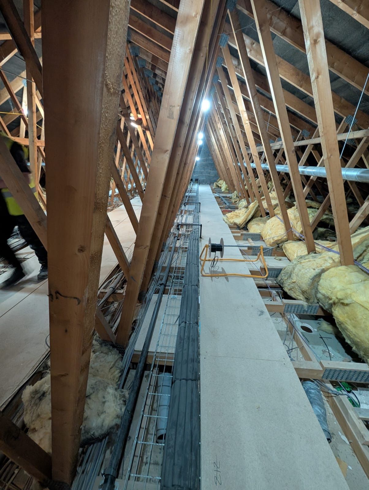 Complex pipework routes: Careful coordination was required to accommodate new services within existing building fabric.